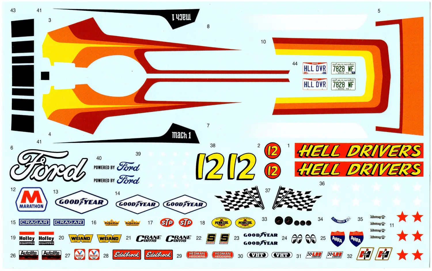 Build this kit 1 in 3 ways – street, stunt, or drag racing pro stock.