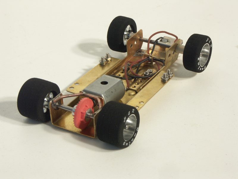 HRCH01 - HRCH01 H&R Racing Products Adjustable Wheelbase 1/24 RTR assembled Rolling Chassis - Wheelbase adjustable from 3 5/8" to 4 7/8" (92mm to 123mm) - Includes new 40,000 RPM Motor with larger cooling holes, foam rear tires on setscrew aluminum hubs, Foam Front Tires on set screw aluminm hubs, Oilite bushings, body mounting kit. Comes with inline motor mount & 31 tooth cox crown gear and 9 tooth pinion gear. Fairgrounds