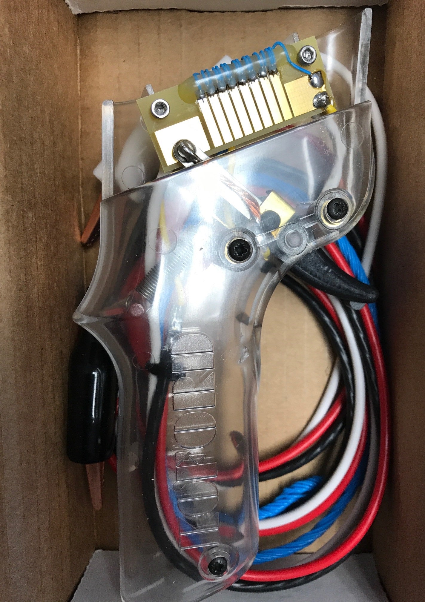 KOF558-3 -3 ohm External wire resistor controller for D and C can motor . Durable with smooth trigger action. External resistor keeps heat away from the hand. Heavy wires and all soldered connections for low resistance. Floating wiper button.
