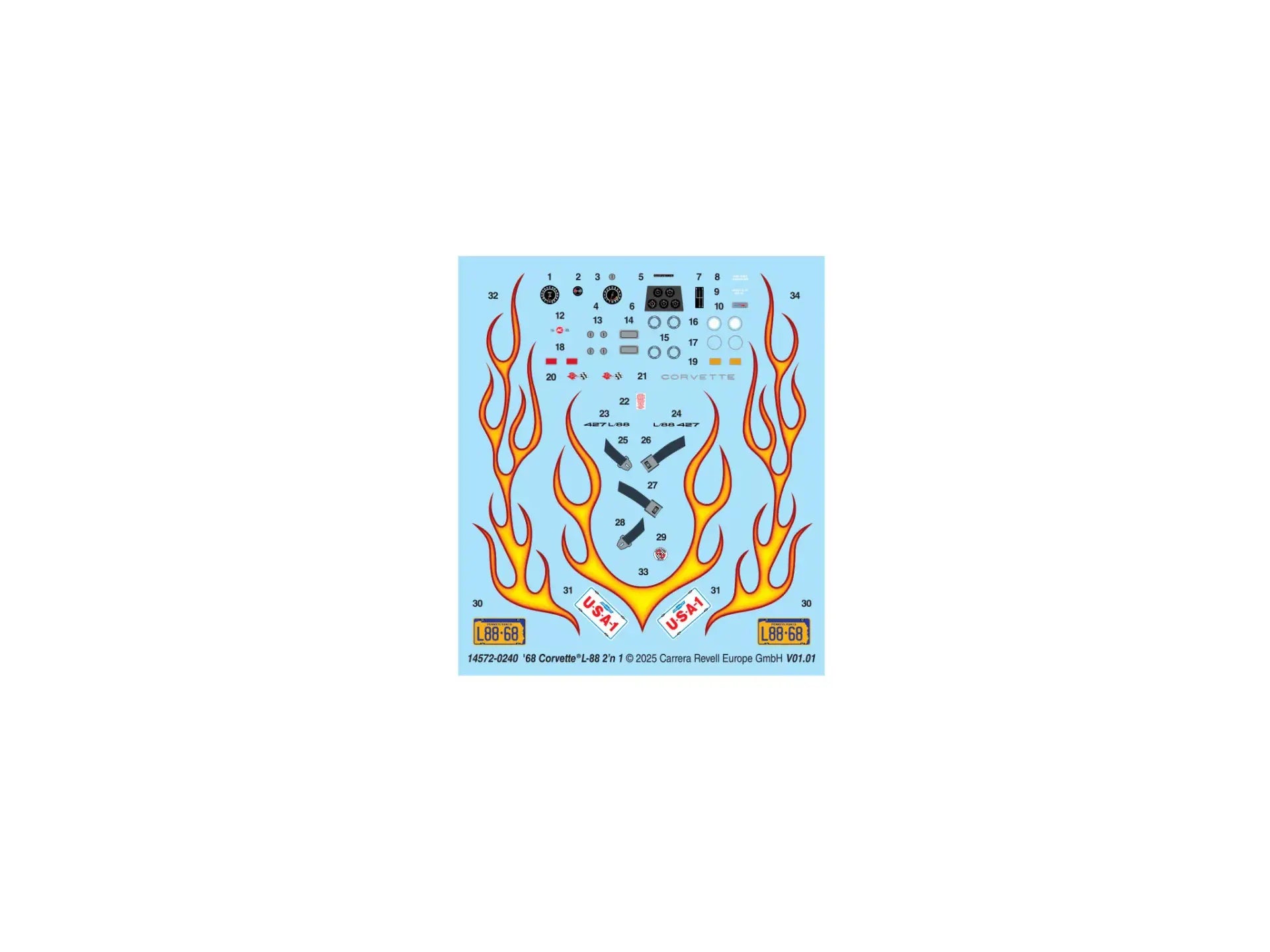 This carefully detailed Revell kit includes parts to build a factory-stock ’68 Corvette convertible with the L88 mill or a wild street machine with a blown-and-injected 427 V-8 poking through the hood, a pair of chrome side pipes, and custom wheels.