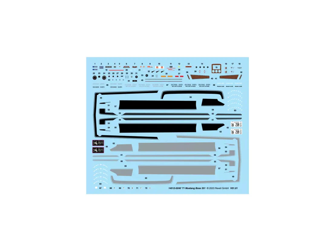 - Extensive decal sheet includes Boss 351 graphics in silver and black